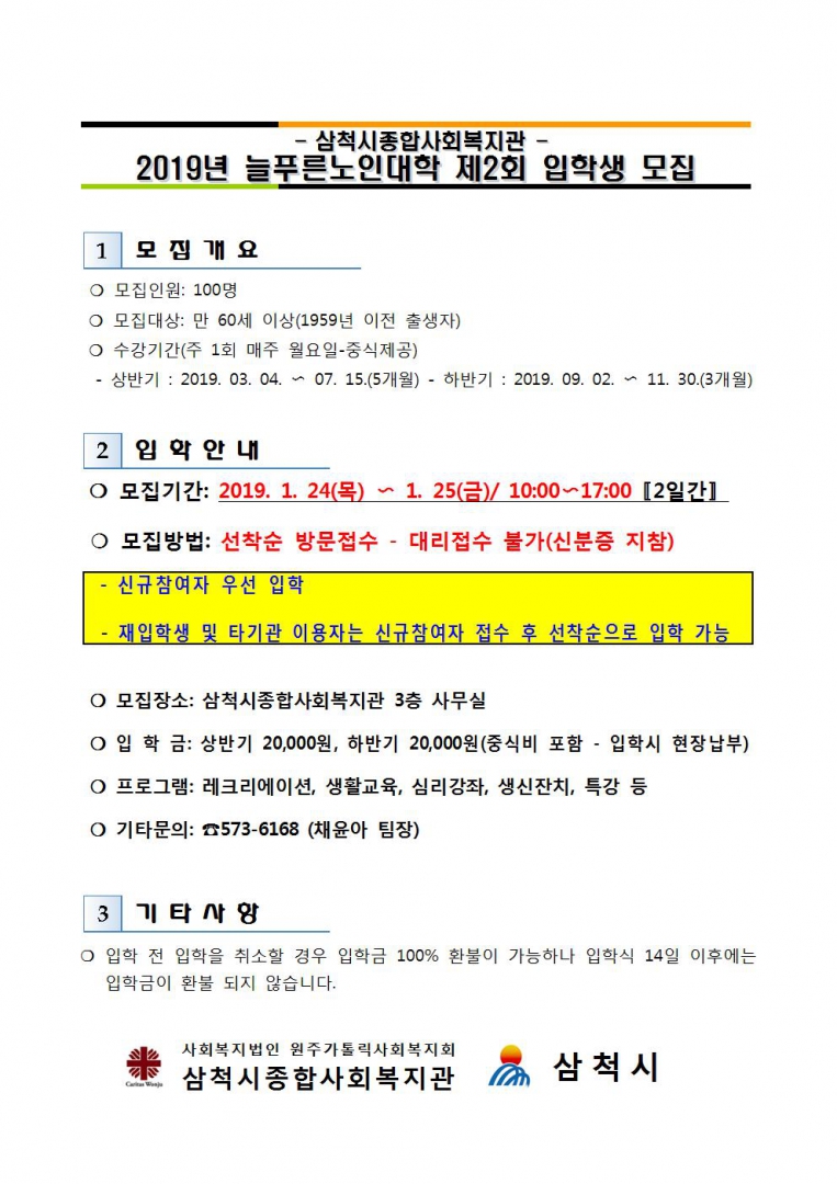 모집공고 2019년 늘푸른노인대학 제2회 입학생 모집 페이지 정보 작성자 채윤아 댓글 0건 조회 6,318회 작성일 19-01-16 17:45 목록 본문 페이스북 공유 트위터 공유 이전글웰빙센터 직원채용 면접 일정 알림 19.01.21 다음글2019년 생생장수교실 강사 모집 공고 19.01.14 댓글 0 댓글목록 등록된 댓글이 없습니다.
