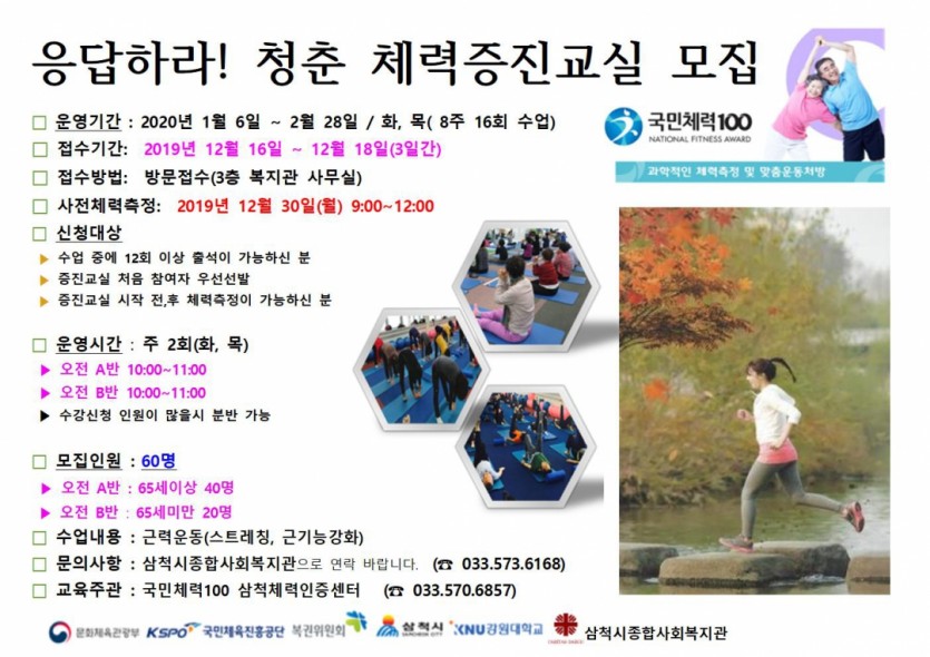 모집공고 2020년 체력증진교실(겨울방학 특강) 참여자 모집(마감) 페이지 정보 작성자 안일주 댓글 0건 조회 5,916회 작성일 19-12-19 12:30 목록 게시판 리스트 옵션 검색 본문 페이스북 공유 트위터 공유 이전글하하호호 놀이학교 주 양육자 및 지역주민을 위한 부모교육 특강실시 19.12.16 다음글2020년 겨울방학 맞벌이가정 자녀 돌봄을 위한 꿈자람교실 참여자 모집(마감) 19.12.19 댓글 0 댓글목록 등록된 댓글이 없습니다.