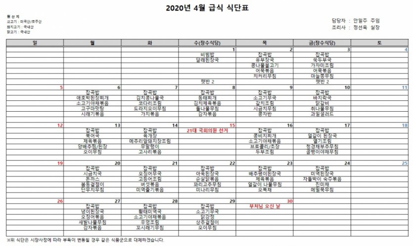 식단표 2020년 4월 식단표 페이지 정보 작성자 안일주 댓글 0건 조회 5,209회 작성일 20-04-02 13:31 목록 게시판 리스트 옵션 검색 본문 페이스북 공유 트위터 공유 이전글5월 식단표 20.04.28 다음글2020년 3월 식단표 20.02.28 댓글 0 댓글목록 등록된 댓글이 없습니다.