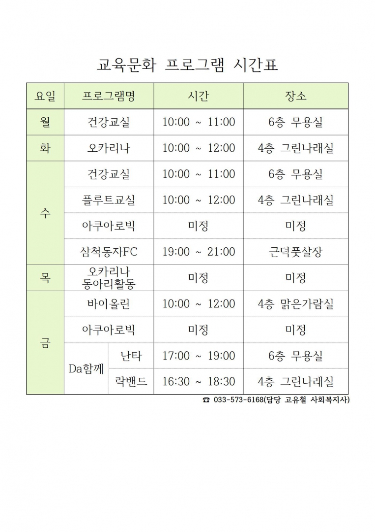 * 문의 033-573-6168(채윤아 팀장)
