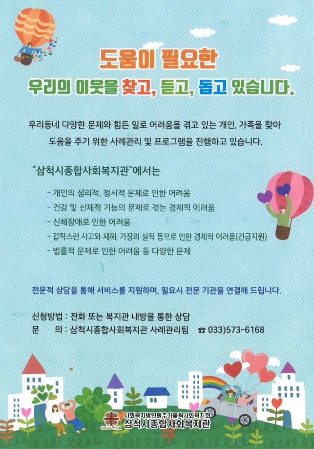 문의: 삼척시종합사회복지관 사례관리팀/ 방기연, 정유진