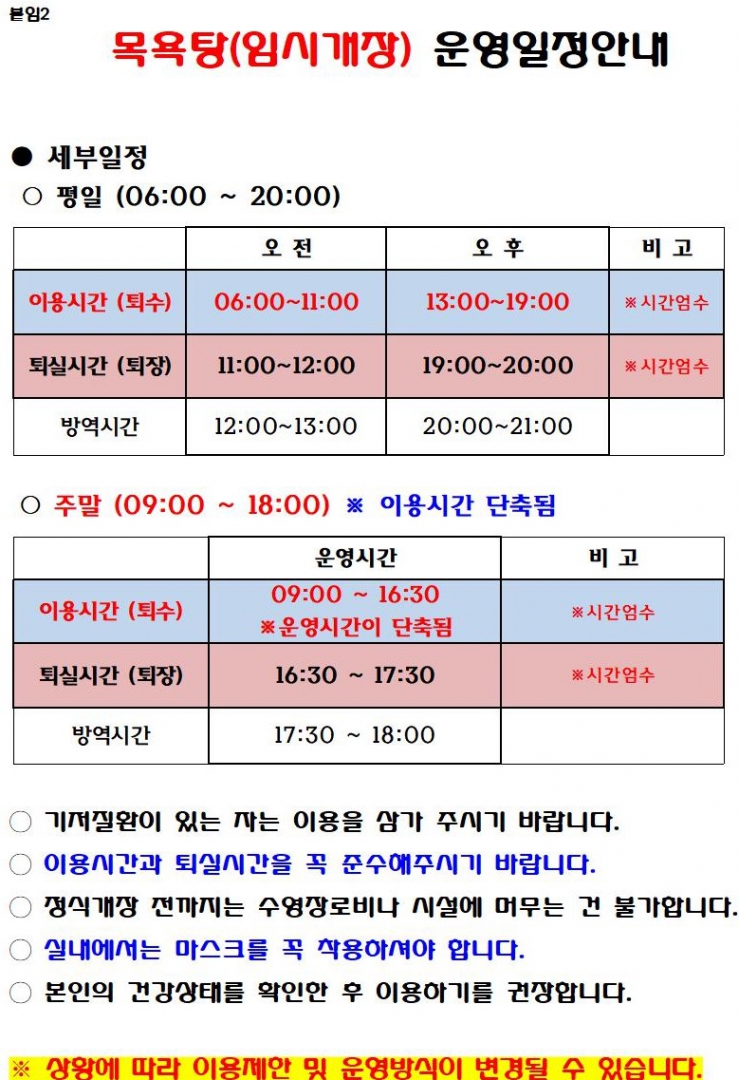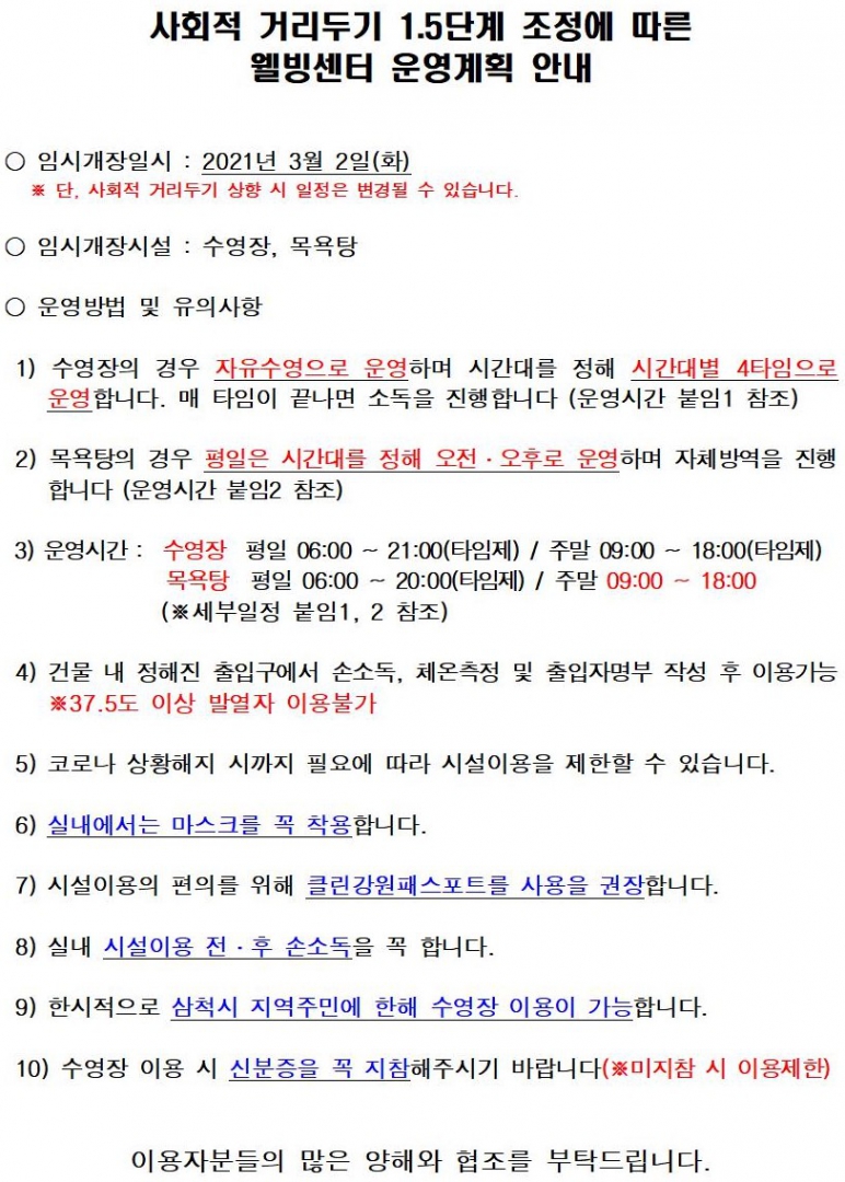 공지사항 2021년 웰빙센터 임시개장 계획 안내드립니다. 페이지 정보 작성자 심성규 댓글 0건 조회 6,861회 작성일 21-11-15 12:17 목록 게시판 리스트 옵션 검색 본문 페이스북 공유 트위터 공유 이전글목욕탕 이용 안내 - 신분증지참 - 삼척시민 만 입장가능 21.03.25 다음글삼척시종합사회복지관 웰빙센터 오픈관련 안내 21.11.15 댓글 0 댓글목록 등록된 댓글이 없습니다.