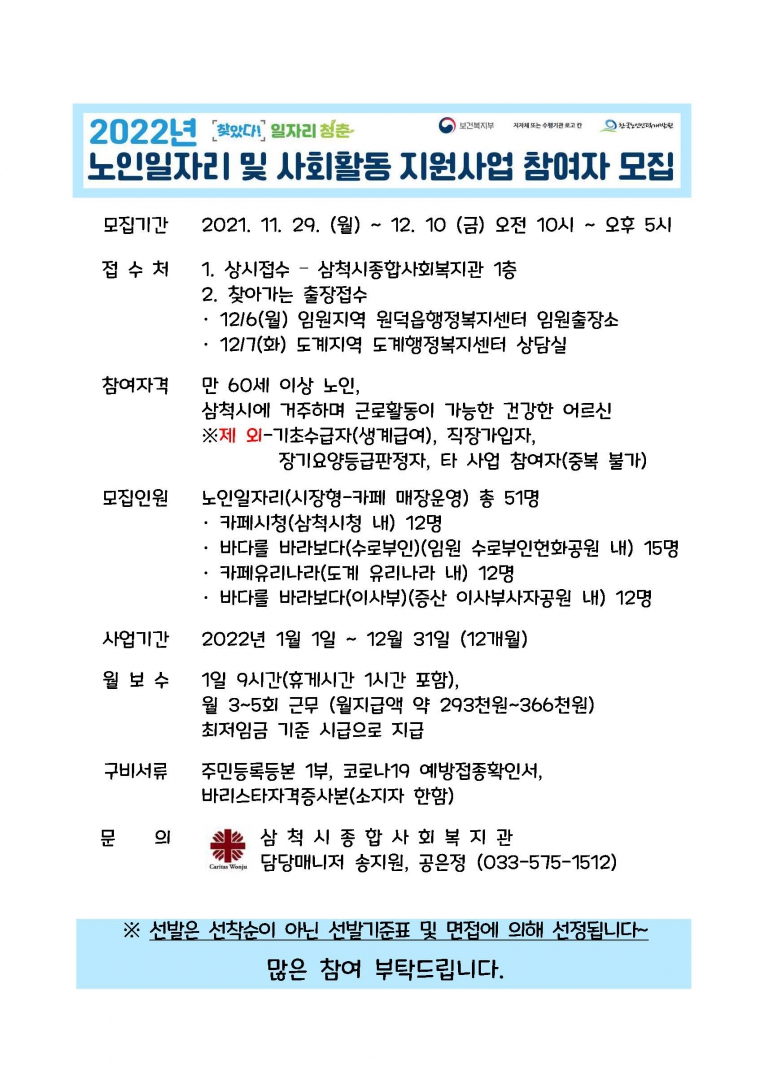 모집공고 2022년 시장형 노인일자리 참여자 모집공고