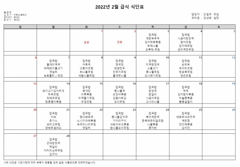 식단표 2022년 2월 식단표 페이지 정보 작성자 안일주 댓글 0건 조회 6,390회 작성일 22-02-03 11:00 목록 본문 페이스북 공유 트위터 공유 이전글2022년 노년기 건강증진 “아쿠아로빅” 참여자 모집 22.02.14 다음글2022년 1월 식단표 22.01.03 댓글 0 댓글목록 등록된 댓글이 없습니다.