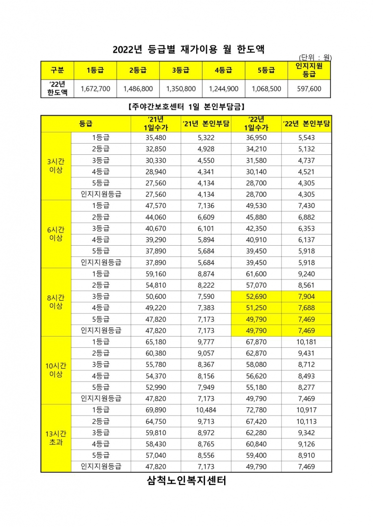 공지사항 2022년 장기요양 등급별 재가이용 월 한도액(삼척노인복지센터) 페이지 정보 작성자 행복토끼 댓글 0건 조회 6,517회 작성일 22-03-04 14:50 목록 게시판 리스트 옵션 검색 본문 페이스북 공유 트위터 공유 이전글수영장 휴장알림 22.02.14 다음글수영장 운영 관련 안내문 22.10.14 댓글 0 댓글목록 등록된 댓글이 없습니다.