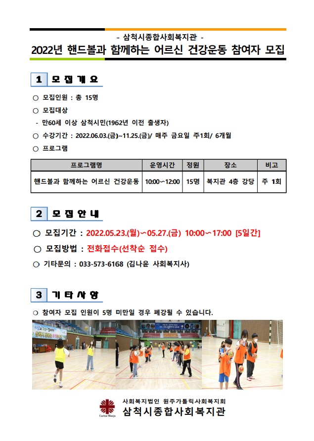 모집공고 2022년 핸드볼과 함께하는 어르신 건강운동 참여자 모집 재공고 페이지 정보 작성자 김나윤 댓글 0건 조회 6,862회 작성일 22-05-25 17:38 목록 본문 페이스북 공유 트위터 공유 이전글2022년 6월 식단표 22.05.31 다음글노인일자리(시장형) 바다를 바라보다 수로부인 참여자 모집공고 22.05.24 댓글 0 댓글목록 등록된 댓글이 없습니다.