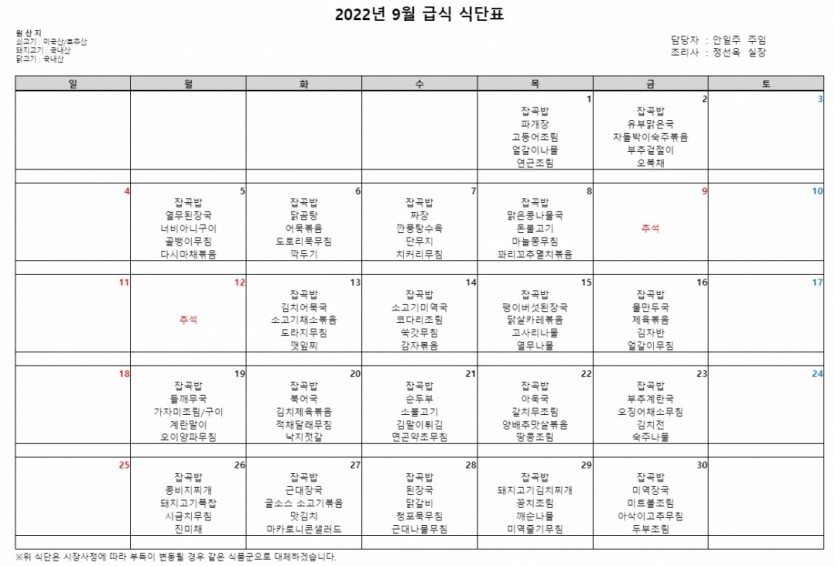 식단표 2022년 9월 식단표 페이지 정보 작성자 안일주 댓글 0건 조회 7,167회 작성일 22-09-01 09:05 목록 본문 페이스북 공유 트위터 공유 이전글노인일자리 참여자 모집안내(수로부인매장) 22.09.23 다음글2022년 8월 식단표 22.09.27 댓글 0 댓글목록 등록된 댓글이 없습니다.
