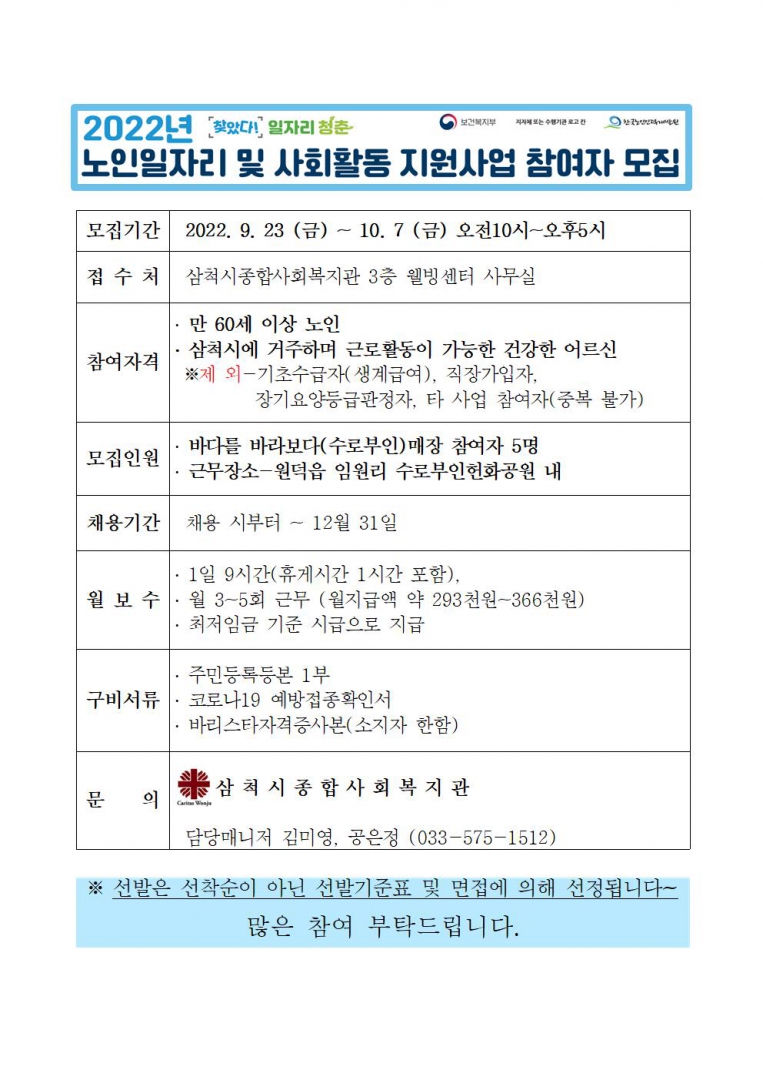 모집공고 노인일자리 참여자 모집안내(수로부인매장)