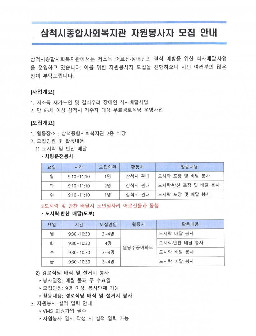 모집공고 2023년 삼척시종합사회복지관 하반기 자원봉사자 모집 페이지 정보 작성자 김라윤 댓글 0건 조회 10,202회 작성일 23-05-12 19:01 목록 본문 페이스북 공유 트위터 공유 문의: 573-6168 이전글웰빙센터 수영장 6월 중급반 개설 안내 23.05.31 다음글5월 수영강습 일정 변경 안내 23.04.28 댓글 0 댓글목록 등록된 댓글이 없습니다.