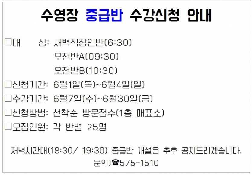 공지사항 웰빙센터 수영장 6월 중급반 개설 안내 페이지 정보 작성자 김해나 댓글 0건 조회 10,334회 작성일 23-05-31 14:43 목록 본문 페이스북 공유 트위터 공유 이전글2023년 하계 사회복지현장실습생모집(6월 12일까지) 23.06.02 다음글2023년 삼척시종합사회복지관 하반기 자원봉사자 모집 23.05.12 댓글 0 댓글목록 등록된 댓글이 없습니다.