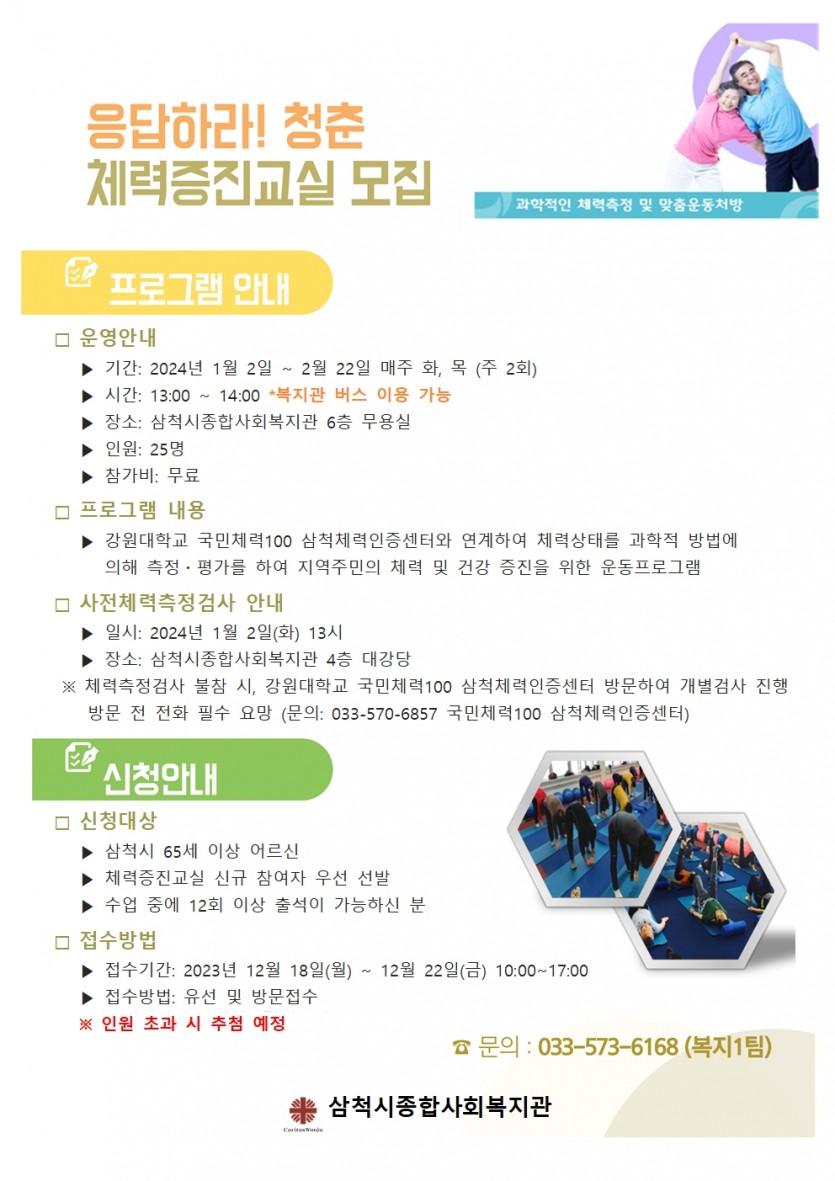 모집공고 2024년 체력증진교실 겨울특강 참여자 모집