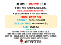 웰빙센터 정상운영 안내(9월 2일 화요일부터 정상운영)